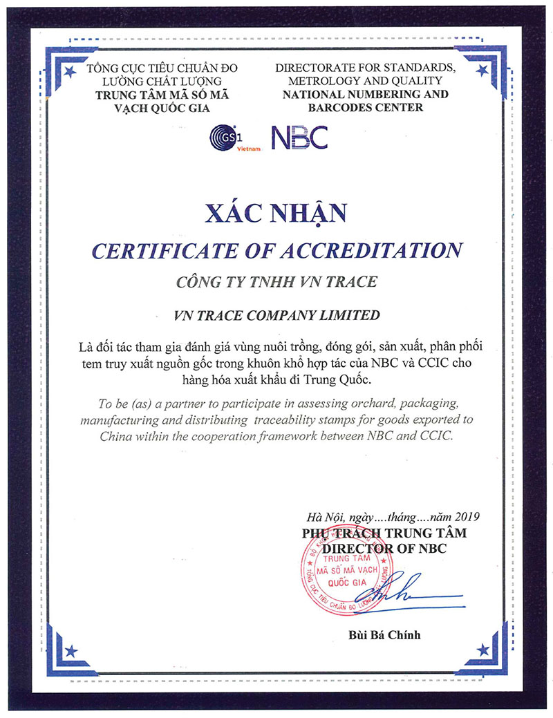 Tạo dữ liệu truy xuất nguồn gốc sản phẩm hàng hoá theo yêu cầu của đơn vị nhập khẩu của Trung Quốc trên phần mềm VN Trace.